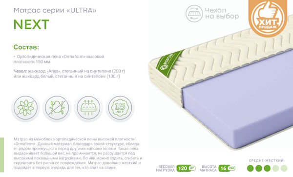 | Подпись к товару | Max. вес на одно спальное место - 120 кг, Беспружинный, любые размеры матрасов |