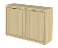 Фасад имеет уникальное сочетание глубокого тиснения и эффекта патины, присущей классическому стилю. Изящество фасада подчеркивает стекло с алмазной гравировкой и фацетом. Мебель изготавливается из высококачественных материалов: ЛДСП, МДФ (фасад).