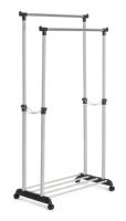 Двойная напольная вешалка JET из коллекции УЮТНЫЙ ДОМ прекрасно подойдет для хранения вещей в вашем доме или квартире. Вместительная и компактная модель позволяет использовать ее в любых помещениях: гардеробной комнате, прихожей, спальне или офисе. Модель удачно дополнит интерьер, подчеркнет его индивидуальность. Металл в сочетании с пластиком выглядит привлекательно и практично. Напольная вешалка функциональна, регулируется по высоте с помощью основательного механизма. Модель оборудована надежными колесиками, с помощью которых ее можно легко переместить в другое место. Вешалка оборудована удобной полкой, на которую можно поставить обувь любой высоты и размера. Серый корпус и хромированные штанги впишутся в любой дизайн. Компактные размеры, небольшой вес, функциональность и универсальность порадуют даже самого взыскательного владельца. Напольная вешалка JET из коллекции УЮТНЫЙ ДОМ будет радовать своей надежностью и прочностью долгие годы. Модель очень проста в сборке, Модель очень проста в сборке.